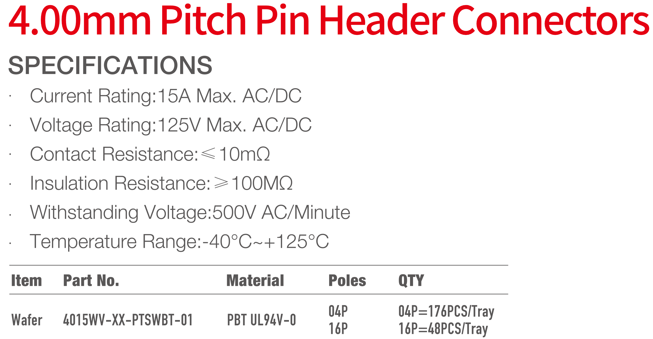 4015 Series 4.00mm Pitch (.157") Pin Header Connectors