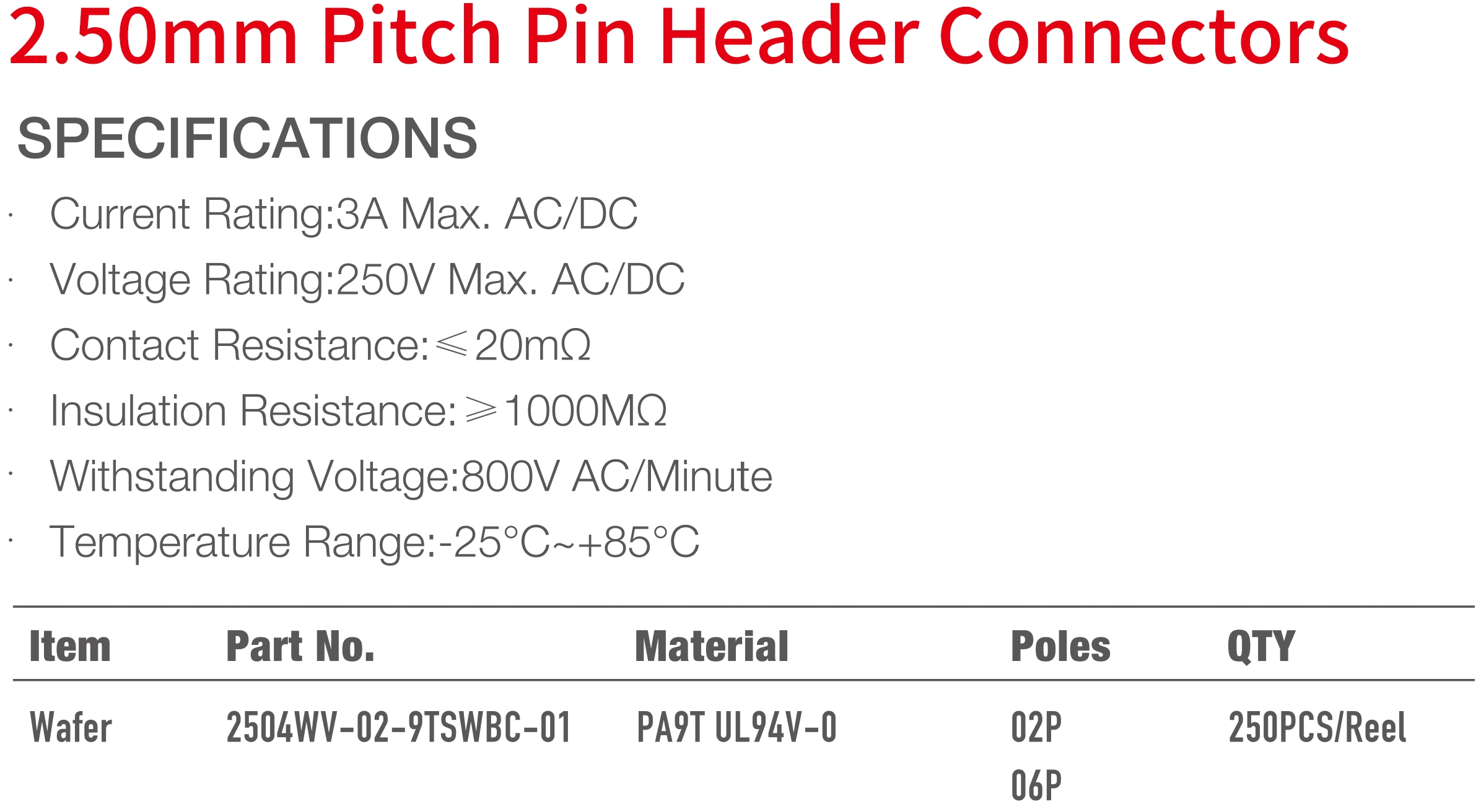 2504 Series 2.50mm Pitch (.098") Pin Header Connectors