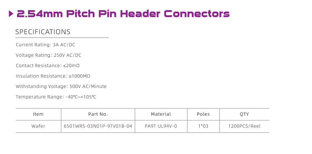 6501WRS-03 Series 2.54mm Pitch (.100") 排針連接器