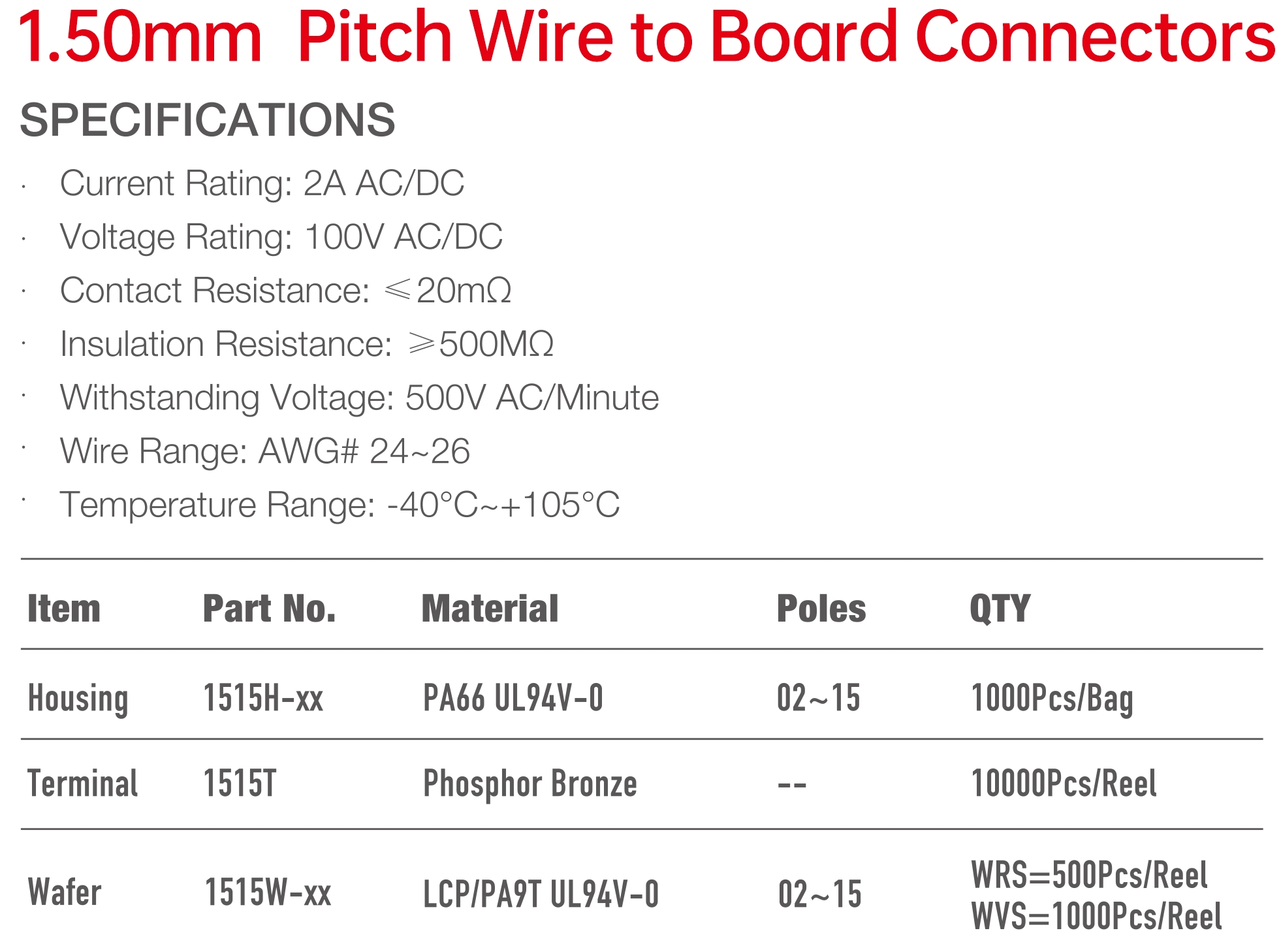 1515 Single Row Series 1.50mm Pitch (.059") 車用連接器