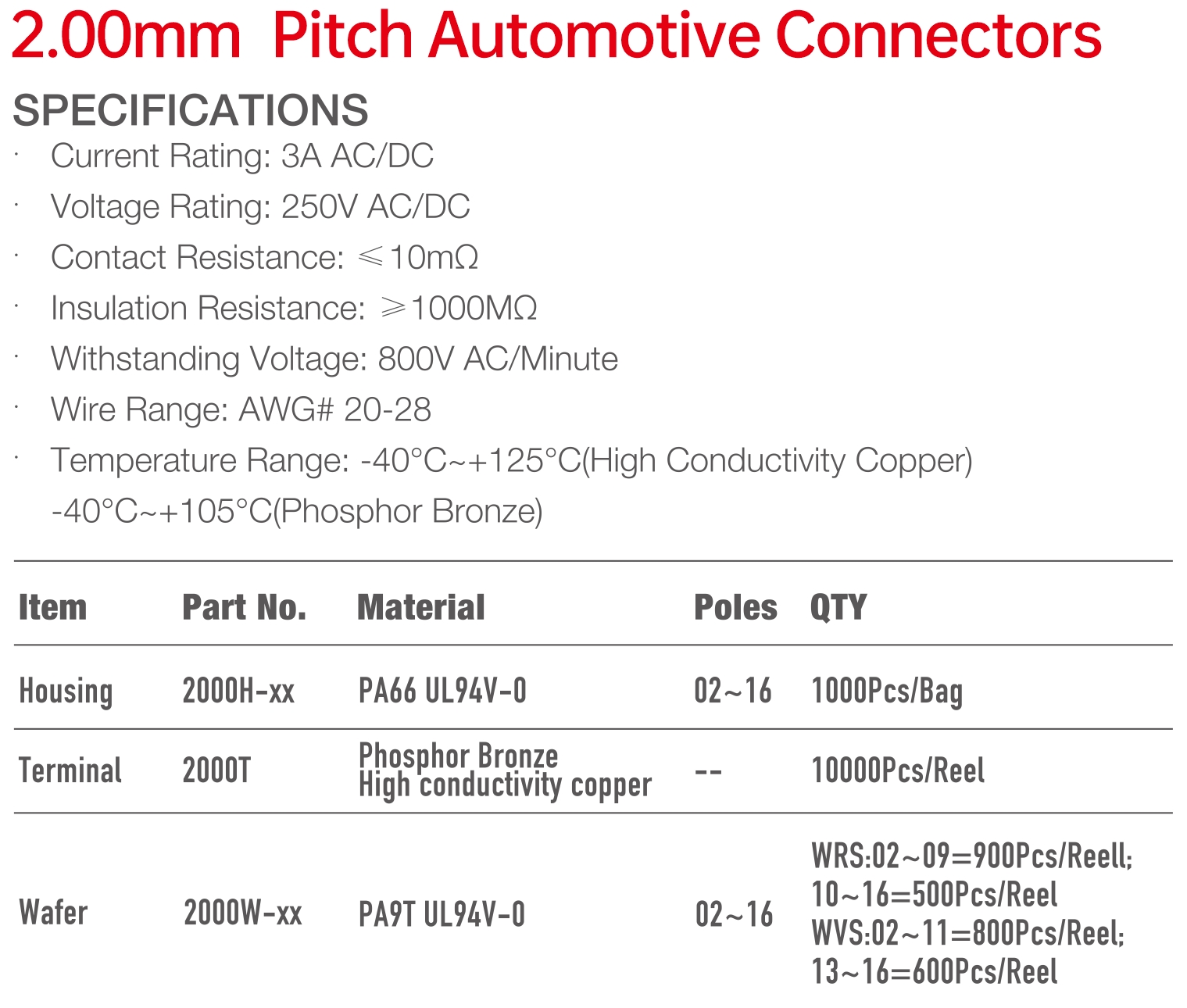 2000 Series 2.00mm Pitch (.079") 車用連接器