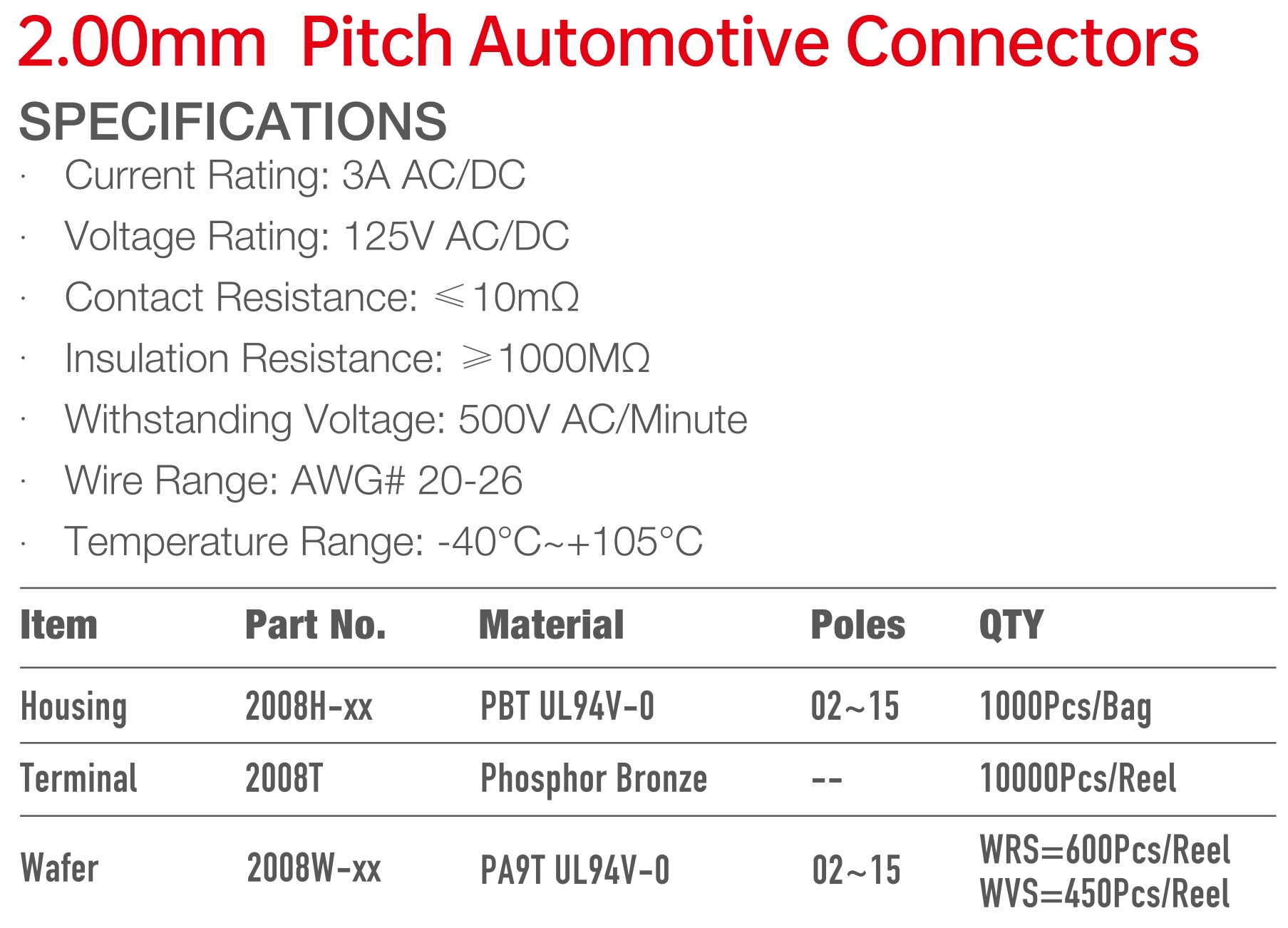 2008 Series 2.00mm Pitch (.079") 車用連接器