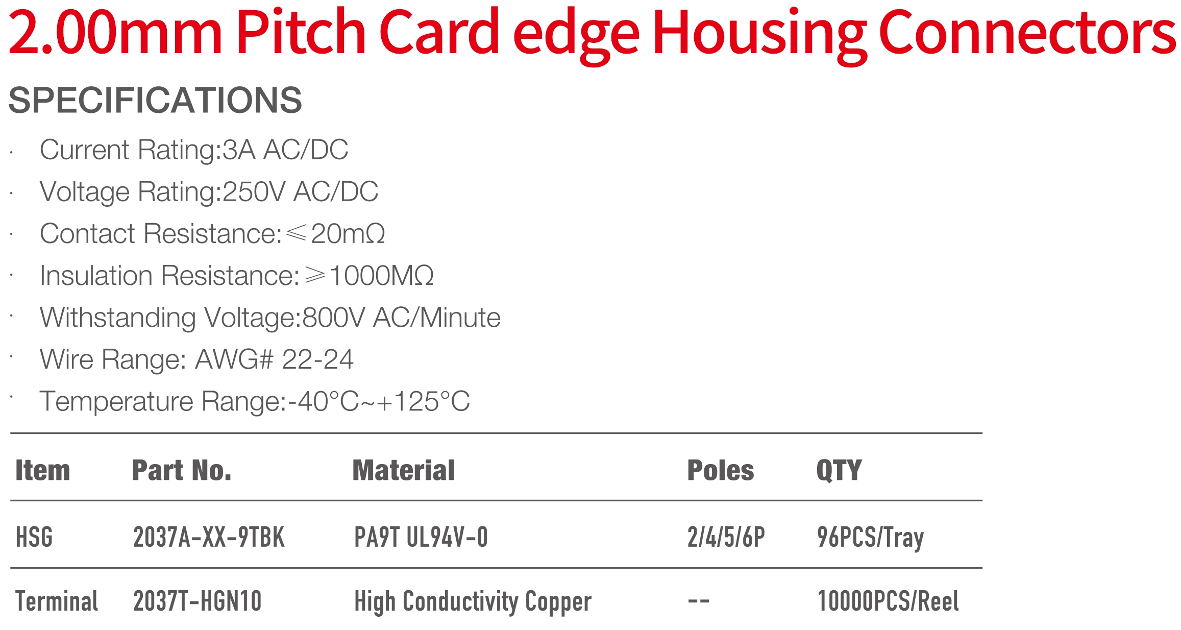 2037 Series 2.00mm Pitch (.079") 卡板連接器