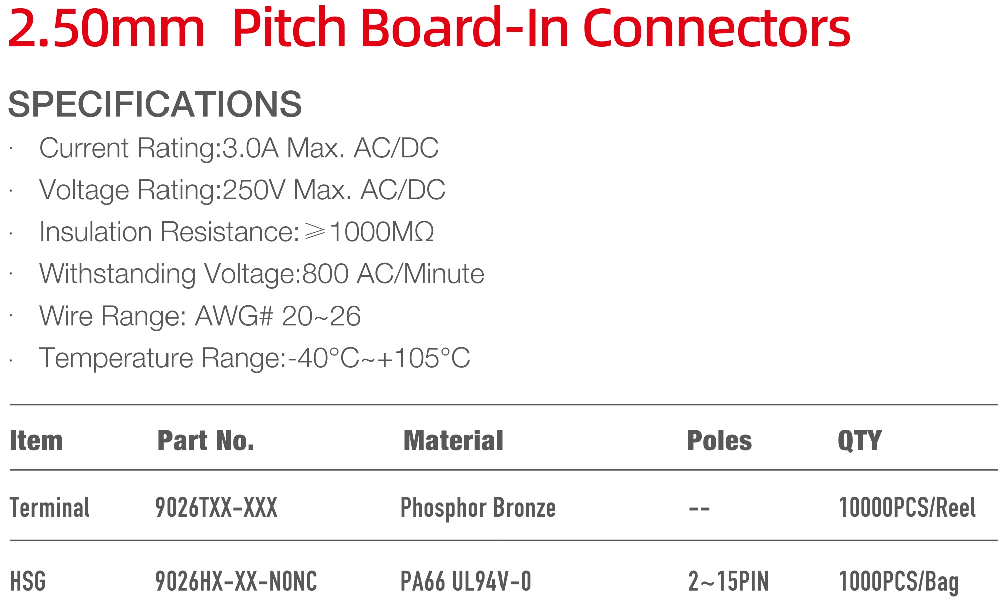 9026 Series 2.50mm Pitch (.098") 基板連接器