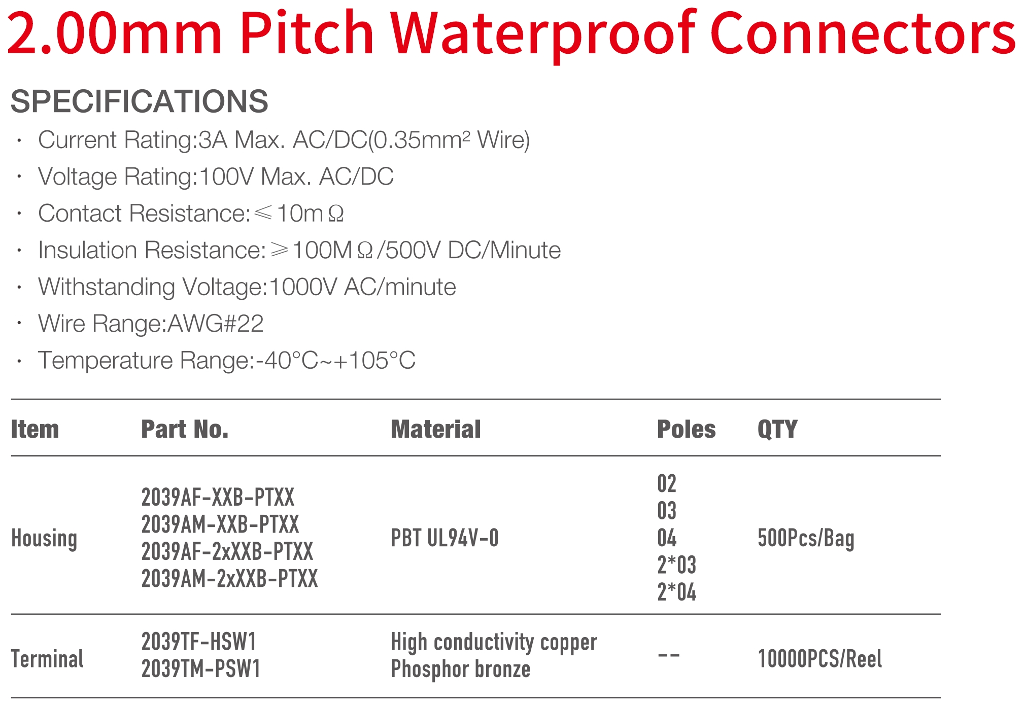2039B Series 2.00mm Pitch (.079") 防水連接器