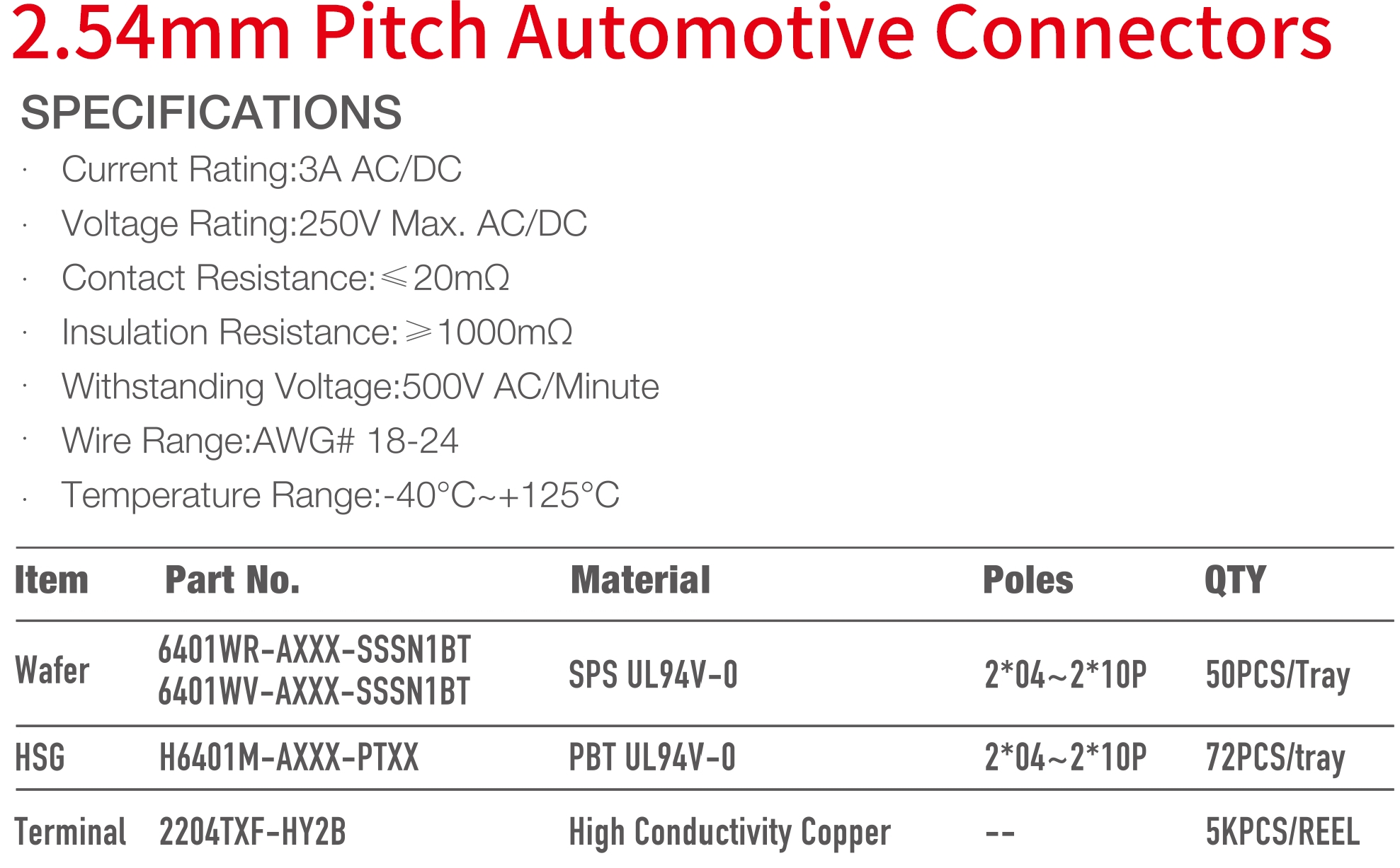 6401A Series 2.54mm Pitch (.100") 車用連接器