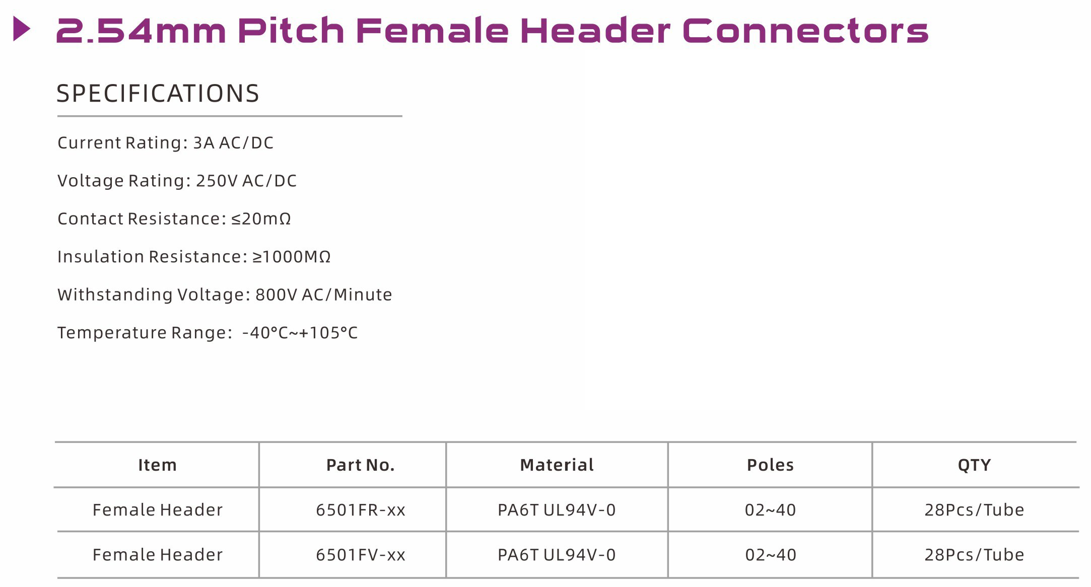 6501F Series 2.54mm Pitch (.100") 排針排母牛角連接器