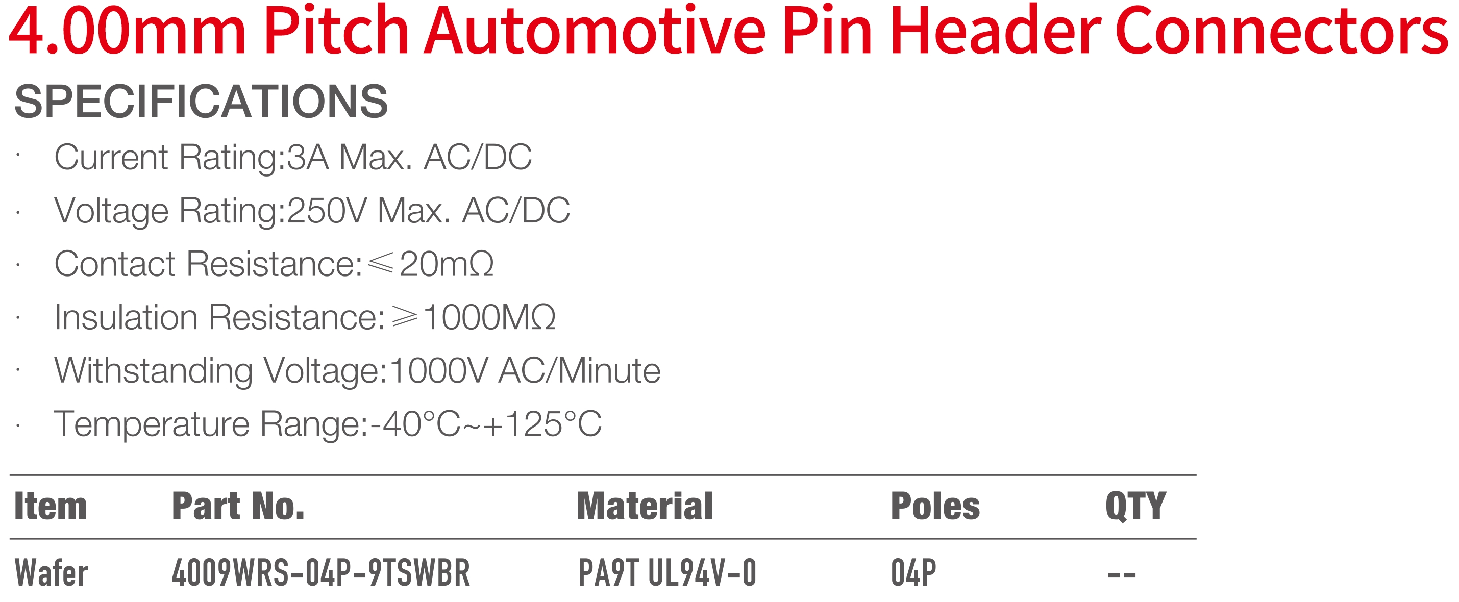 4009 Series 4.00mm Pitch (.157") 車用排針連接器