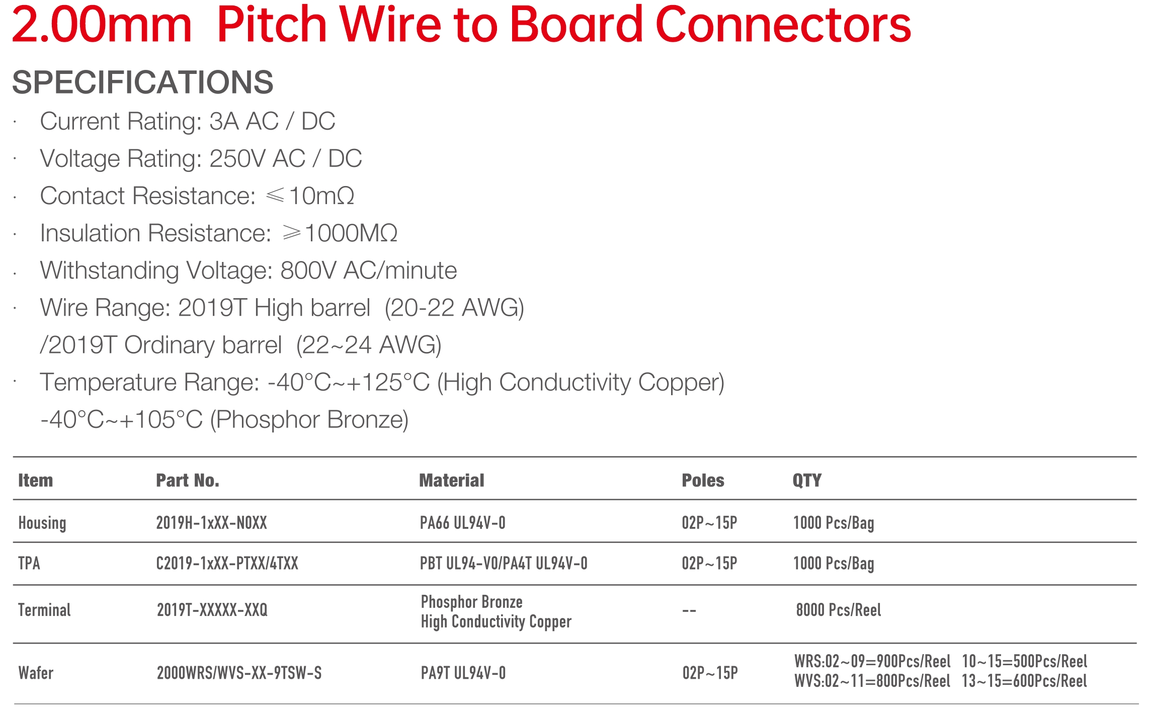 2019 Series 2.00mm Pitch (.079") 車用二次鎖扣連接器