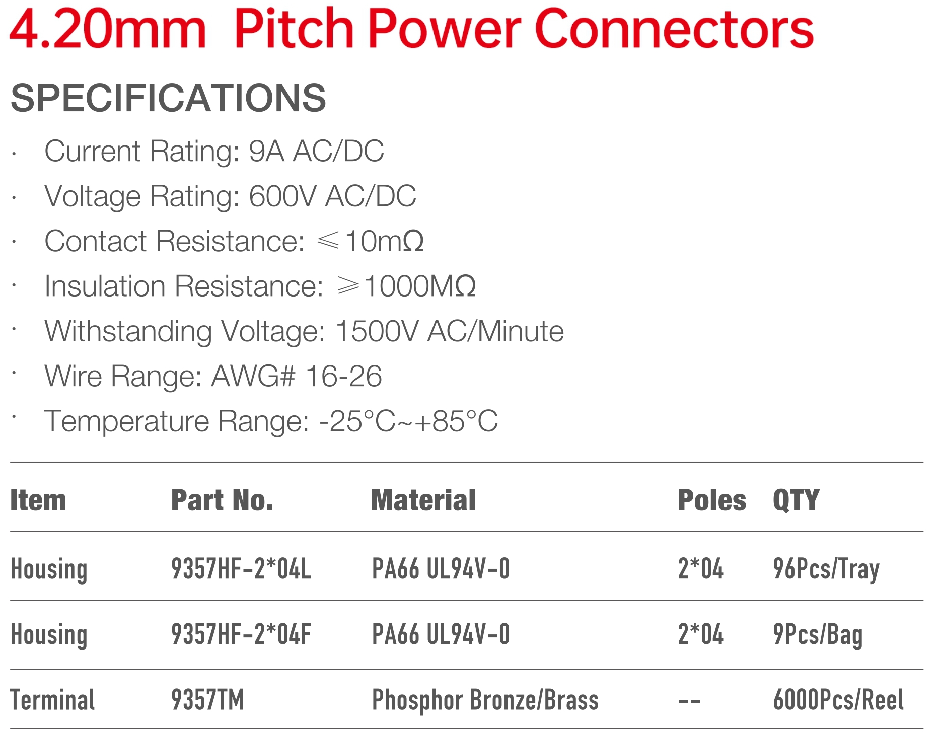 9357 Series 4.20mm Pitch (.165") 電源連接器