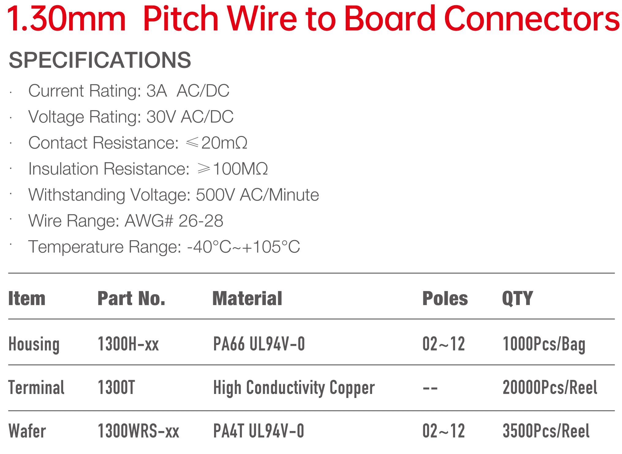 1300 Series 1.30mm Pitch (.051") 線對(duì)板連接器