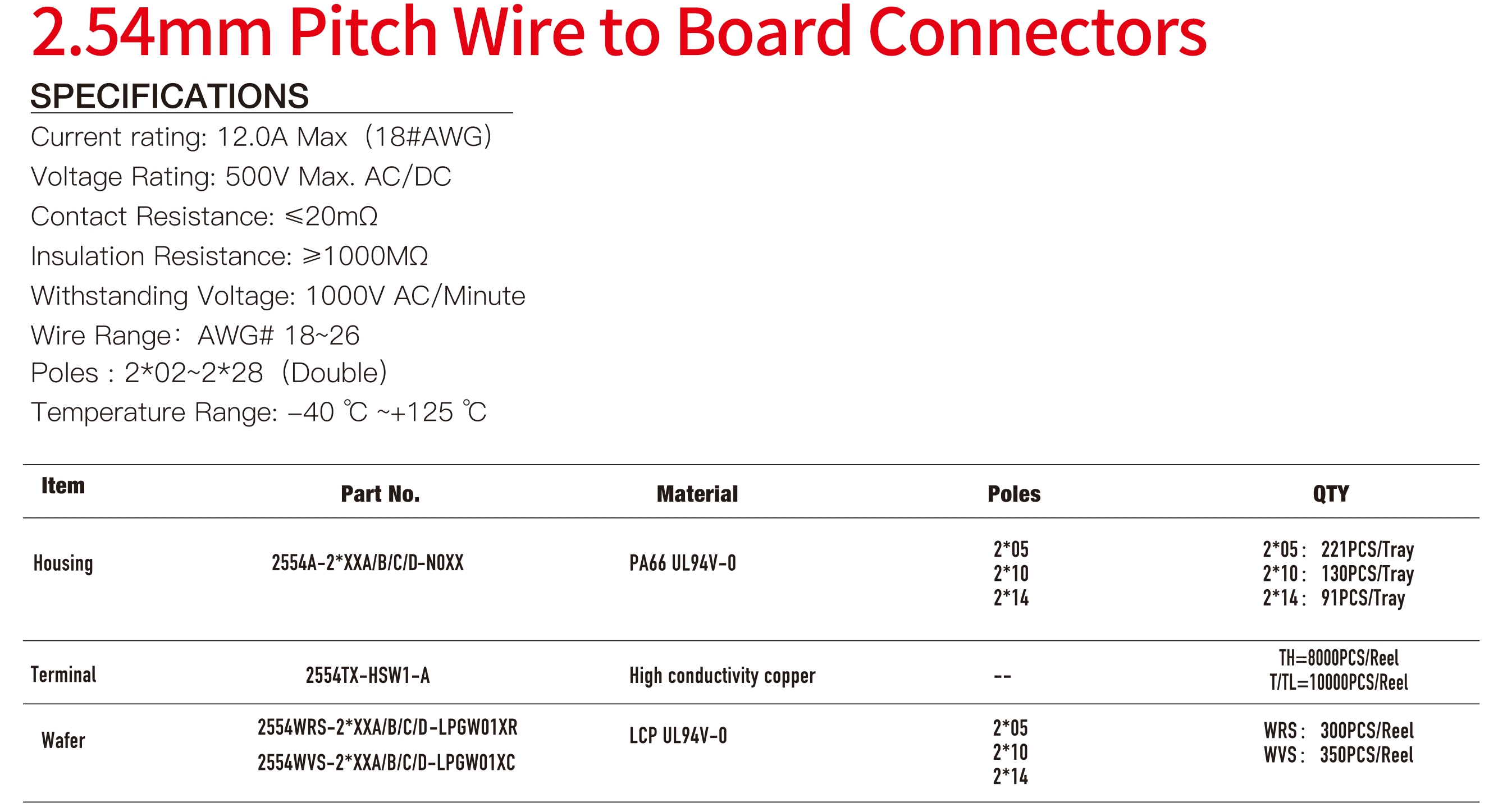 2554 Double Row Series 2.54mm Pitch (.100") 線對板連接器