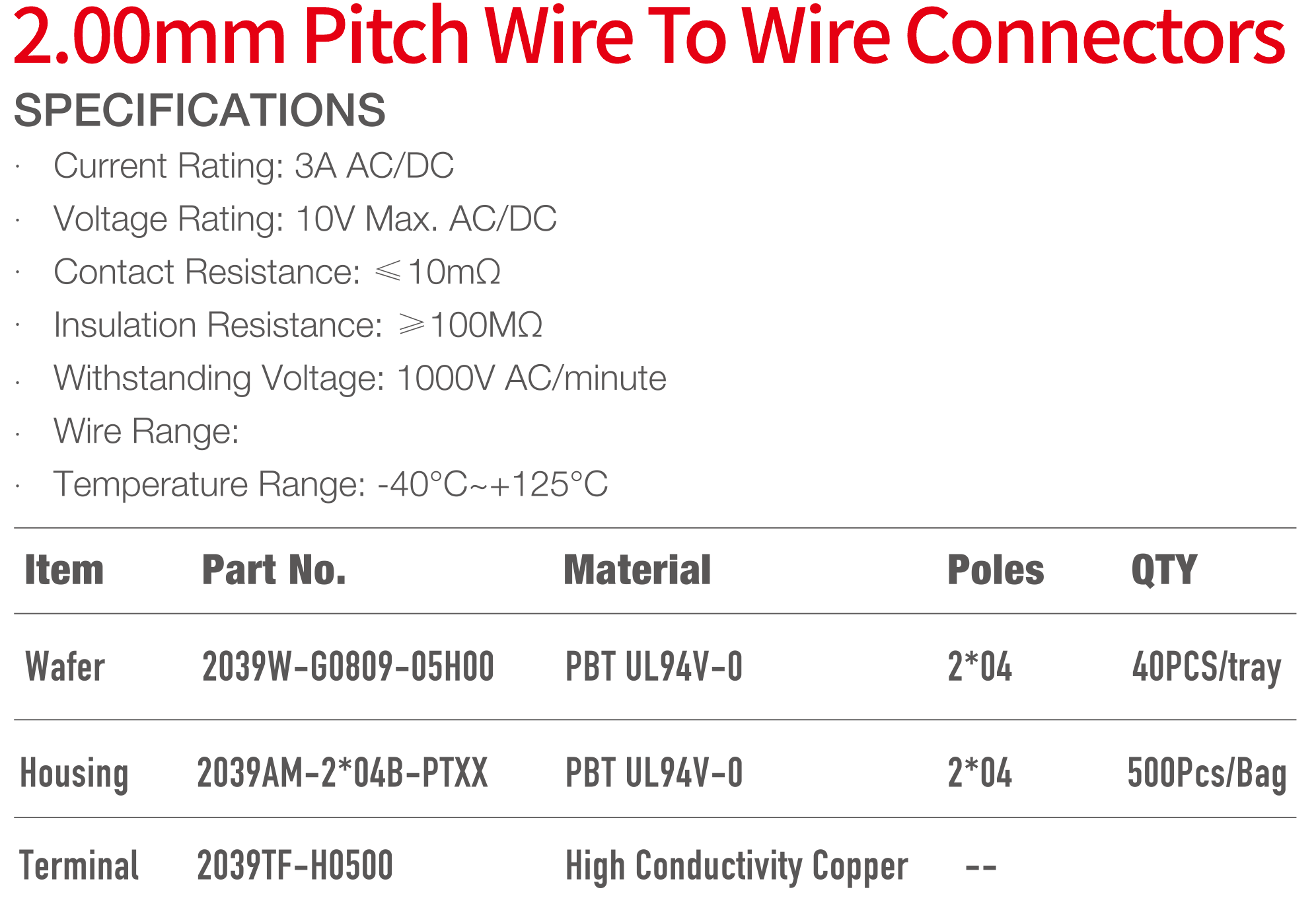 2039W Series 2.00mm Pitch (.079") 線對(duì)線連接器