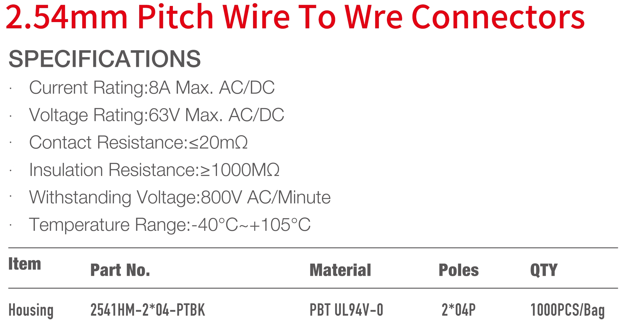 2541 Series 2.54mm Pitch (.100") 線對線連接器