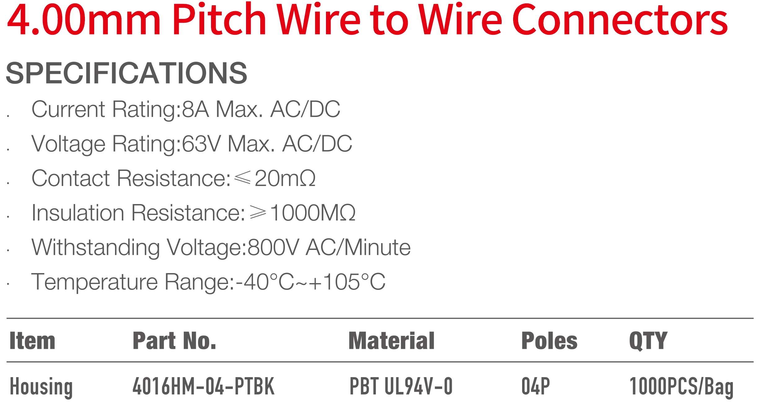 4016 Series 4.00mm Pitch (.157") 線對(duì)線連接器