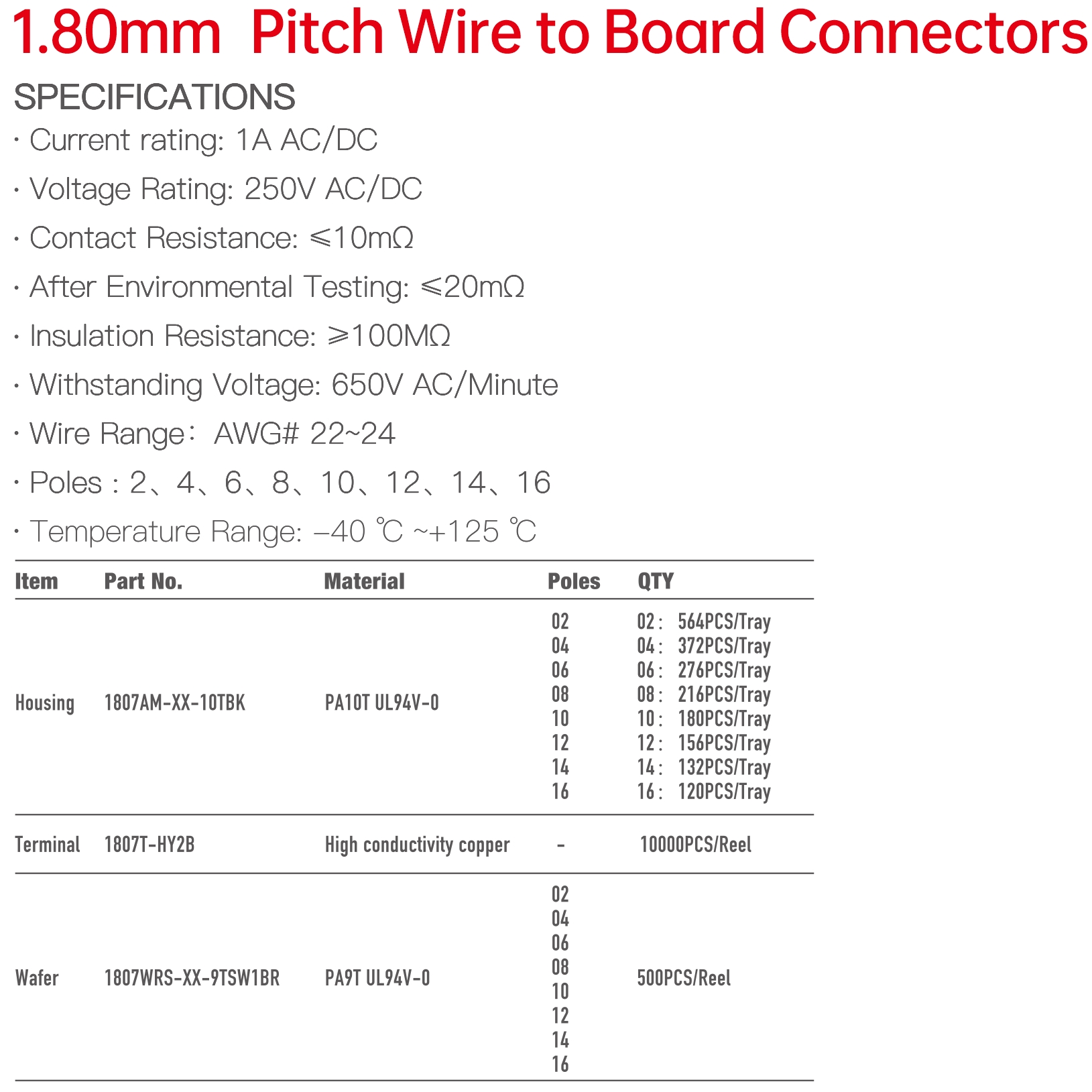 1807 Series 1.80mm Pitch (.071") Wire to Board Connectors