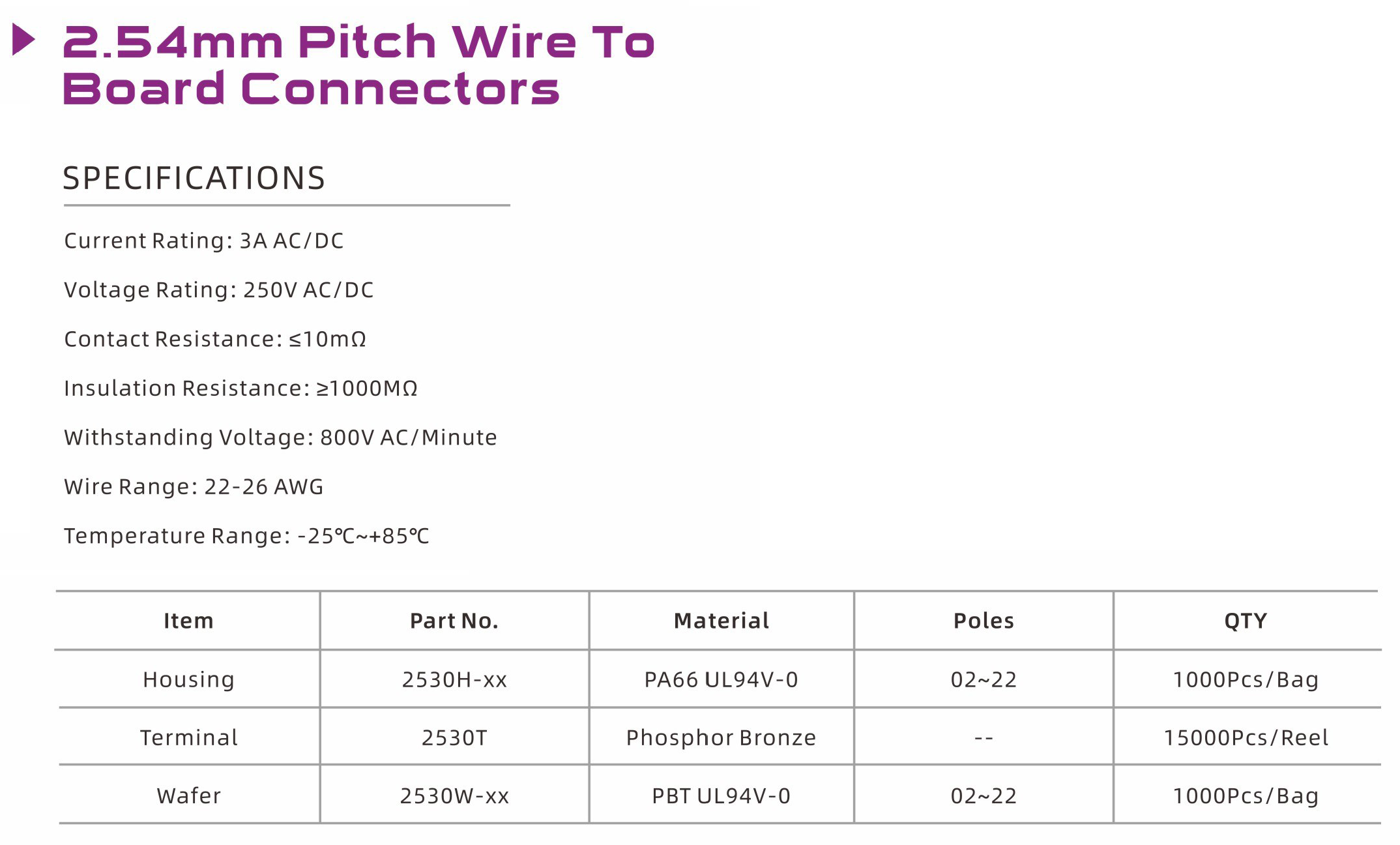 2530 Series 2.54mm Pitch (.100") Wire to Board Connecetors