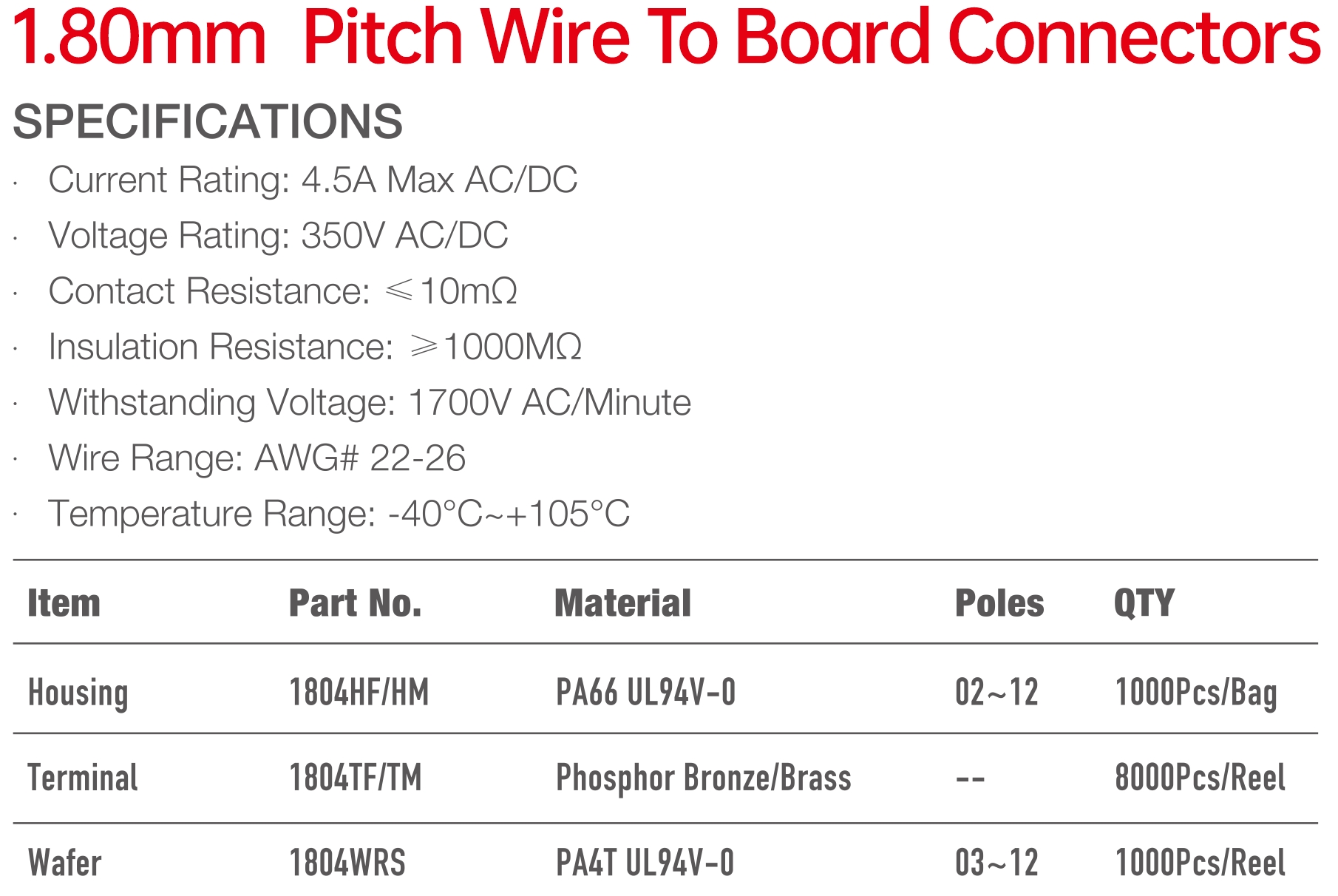 1804 Series 1.80mm Pitch (.071") Wire to Board Connectors