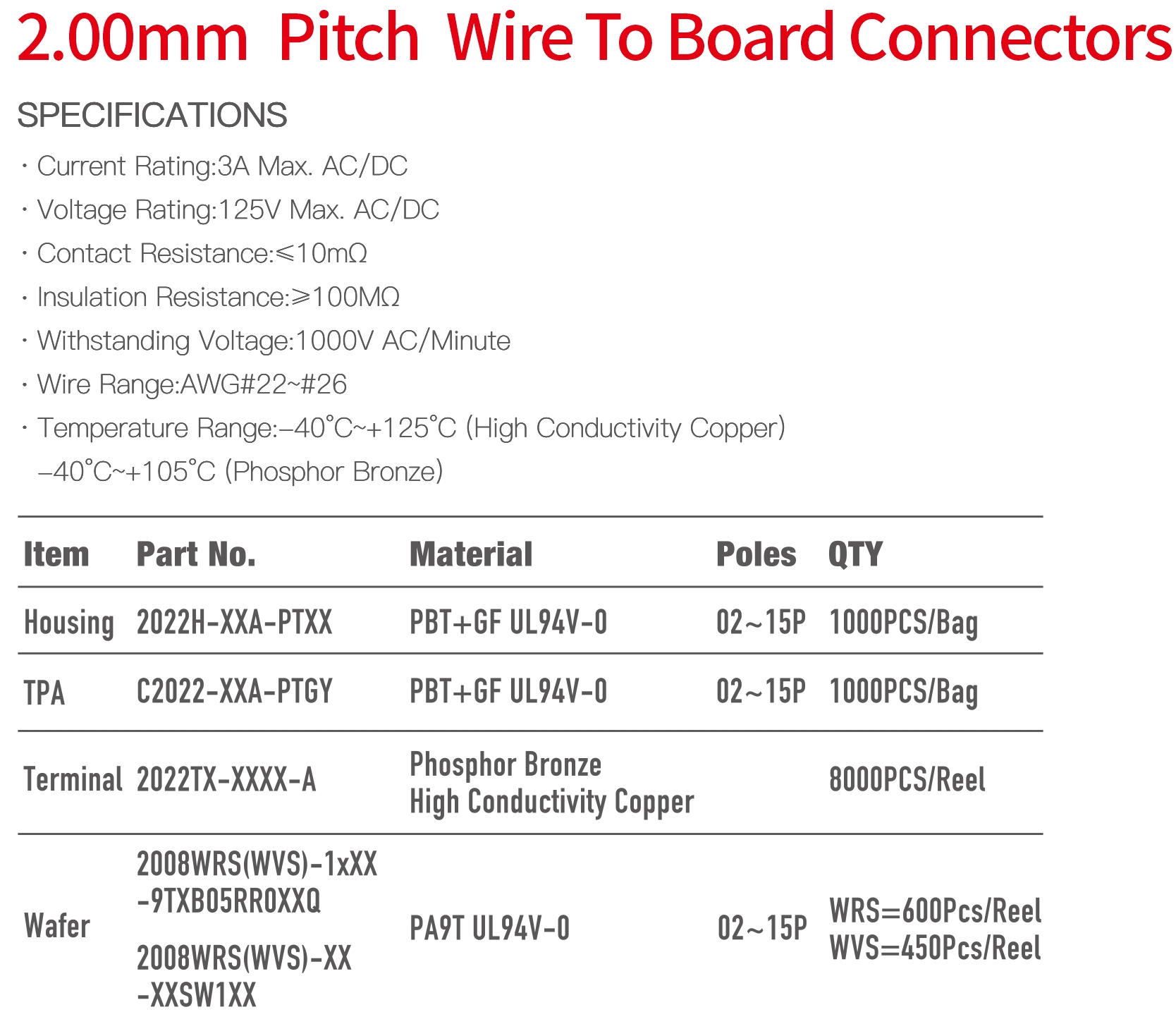 2022A Series 2.00mm Pitch (.079") 線對(duì)板連接器