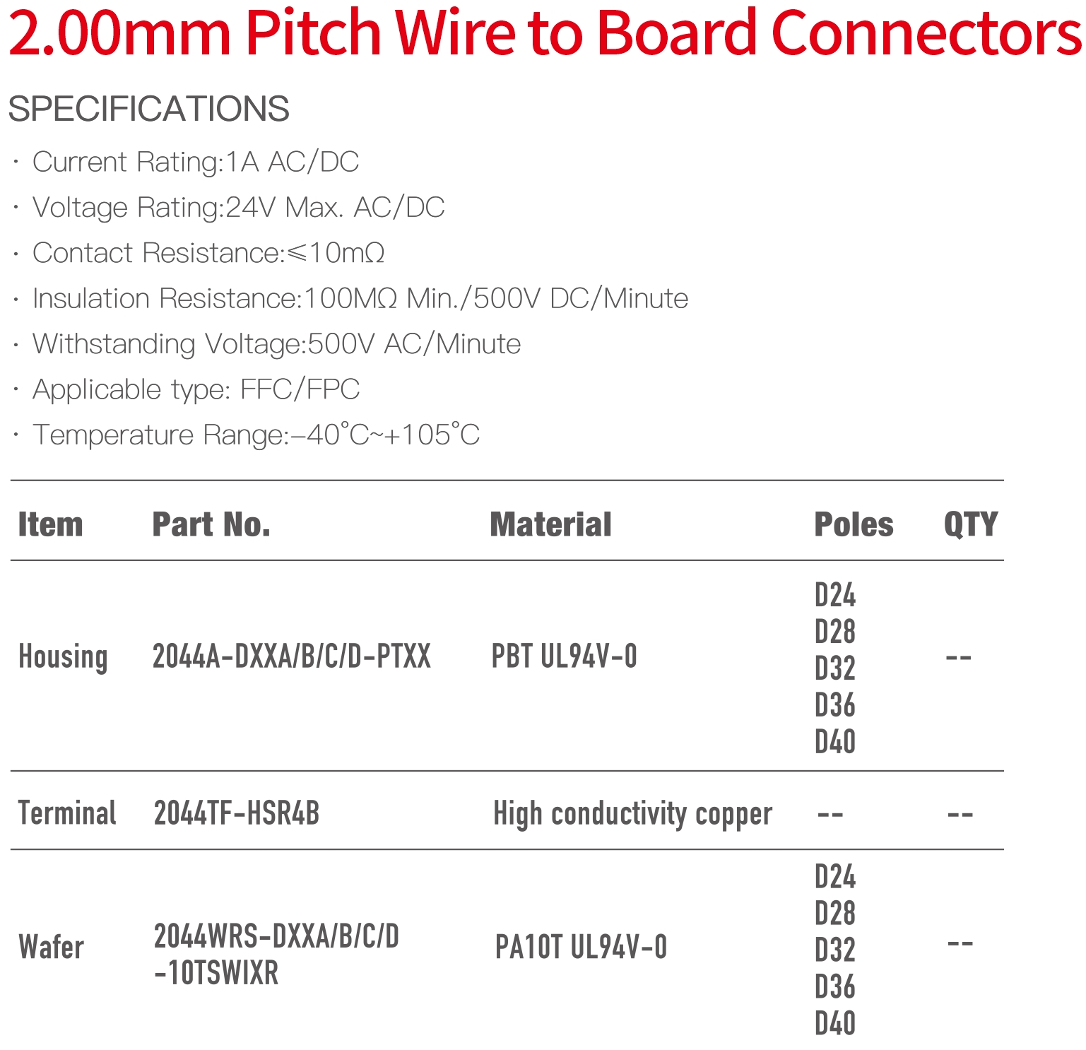 2044 Series 2.00mm Pitch (.079") 線對板連接器