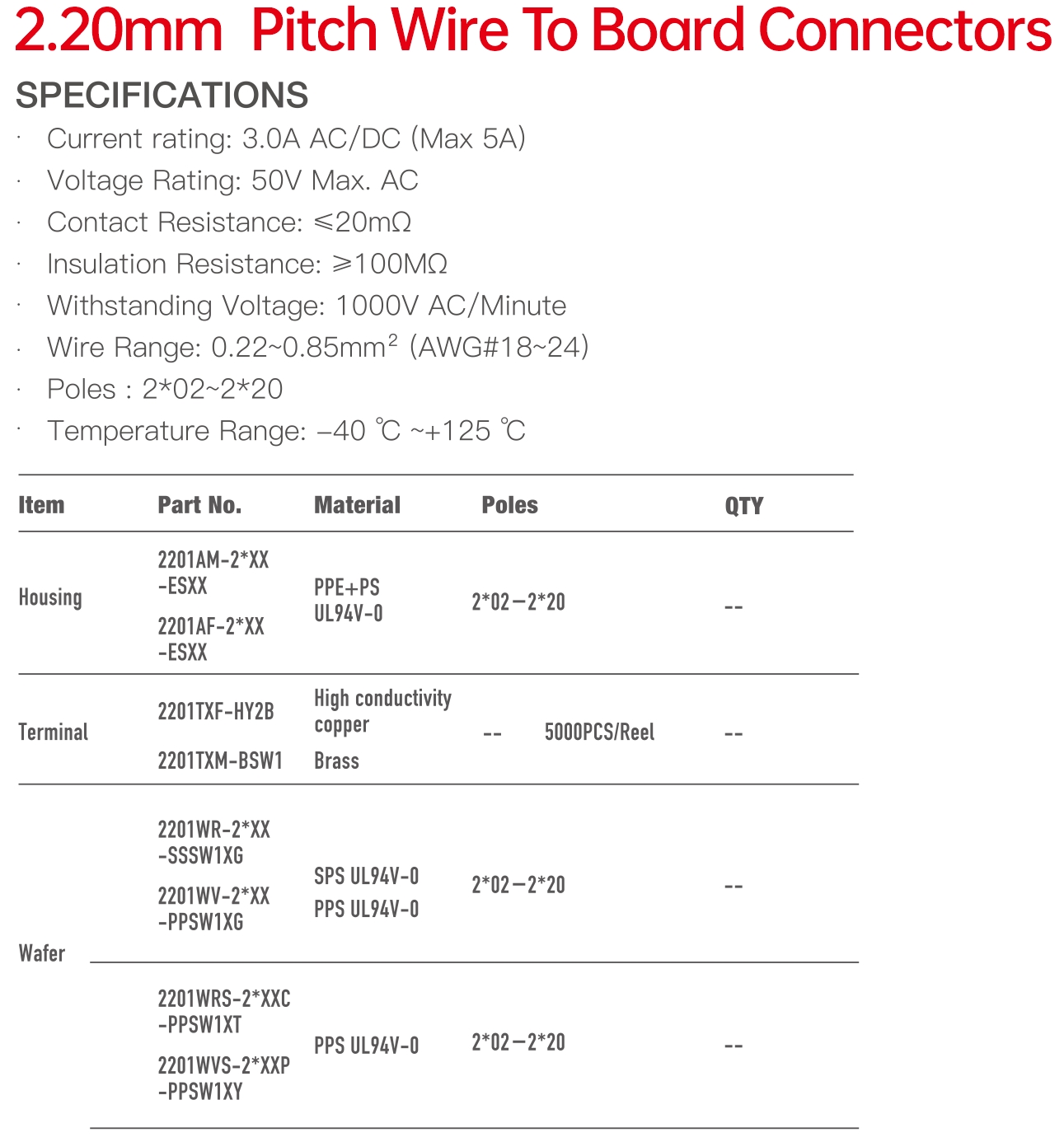 2201 Series2.20mm Pitch (.087") 線對(duì)板連接器