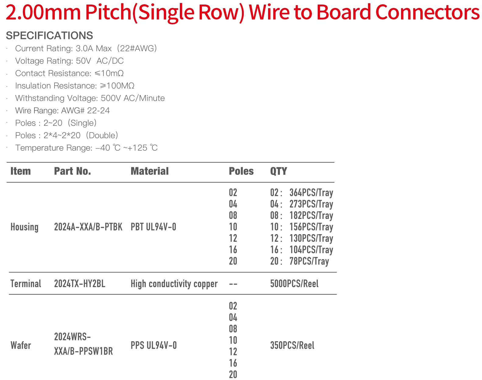 2024A Single Row Series 2.00mm Pitch (.079") 線對板連接器